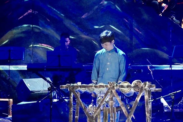 Nhạc sĩ Huy Thông biểu diễn cùng tốp nhạc cụ