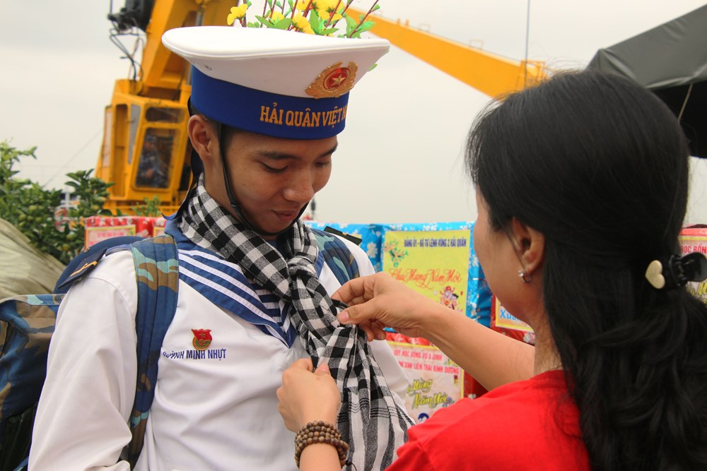 Động viên cán bộ chiến sĩ hai tàu đi biển và cán bộ chiến sĩ ra thay trực ở các nhà giàn DK1 cho đồng đội về bờ, Đại tá Trần Mạnh Chiến, Chính ủy Bộ Tư lệnh Vùng 2 Hải quân đã giao nhiệm vụ, tặng hoa cho hai trưởng đoàn chúc Tết và căn dặn: “Đây là chuyến tàu mùa xuân và hơi ấm đất liền, mang quà của quân và dân cả nước và kiều bào ta ở nước ngoài tặng cán bộ chiến sĩ làm nhiệm vụ nơi đầu sóng ngọn gió. Chuyến đi này sẽ có nhiều vất vả, sóng to gió lớn, nhưng bằng mọi giá hàng quà phải chuyển đến tận tay cán bộ chiến sĩ DK1. Chúc các đồng chí hải lộ bình an, hoàn thành nhiệm vụ trở về đất liền an toàn”.