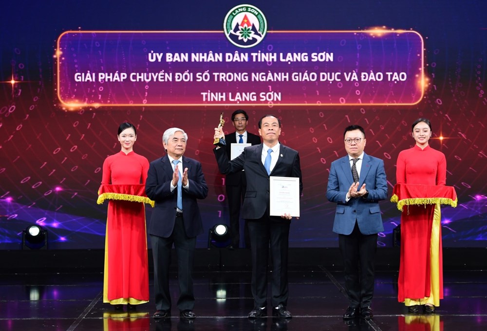 | UBND tỉnh Lạng Sơn được tôn vinh với 2 giải thưởng gồm: Giải thưởng “Mô hình Tổ công nghệ số cộng đồng trên địa bàn tỉnh Lạng Sơn” và Giải thưởng giải pháp “Chuyển đổi số trong ngành Giáo dục và đào tạo Lạng Sơn”. |