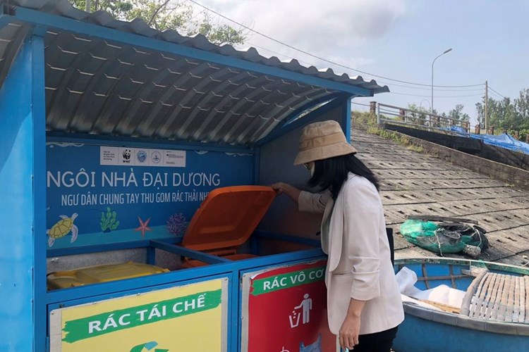 Mô hình “Ngôi nhà đại dương” tập trung rác thải được thu gom từ các chuyến đi biển của ngư dân