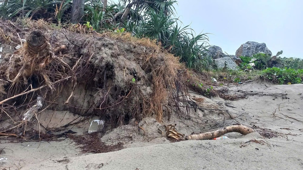 VHO – Bờ biển Quảng Ngãi đang bị nước biển xâm thực, sạt lở nghiêm trọng, ảnh hưởng lớn đến cuộc sống, sản xuất của người dân. Tỉnh đã chỉ đạo triển khai các biện pháp cắm biển cảnh báo, khoanh vùng ngăn không cho người, phương tiện vào khu vực sạt lở, theo dõi diễn biến sạt lở.
