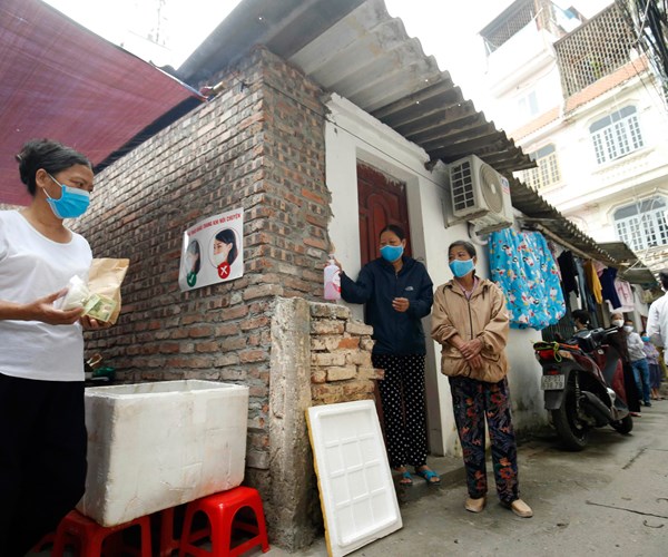 PV Văn Hóa đã ghi lại một số hình ảnh chị Nguyễn Minh Ngọc và người thân phát bánh miễn phí tại “xóm chạy thận” 121 Lê Thanh Nghị, Hà Nội sáng 19.4: