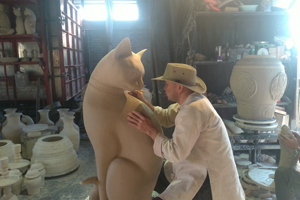 Mèo cho năm Quý Mão được nghệ nhân tạo hình trước khi nung qua lửa