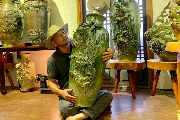 Cái khó của gốm phù điêu là làm sao khi nung qua lửa, các họa tiết không bị rơi khỏi bình