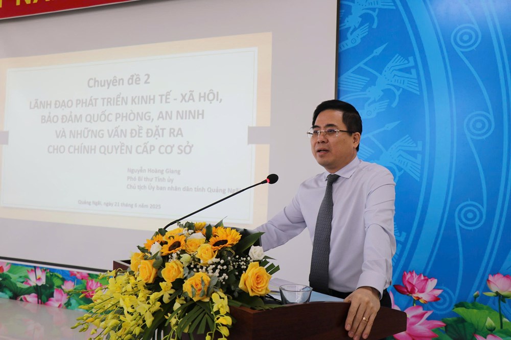 Tại lớp tập huấn, Bí thư Tỉnh ủy Bùi Thị Quỳnh Vân cùng Chủ tịch UBND tỉnh Quảng Ngãi Nguyễn Hoàng Giang đã trực tiếp truyền đạt kiến thức 2 Chuyên đề “Xây dựng Đảng và hệ thống chính trị trong sạch, vững mạnh đáp ứng yêu cầu trong thời kỳ mới” và “Lãnh đạo phát triển kinh tế-xã hội, đảm bảo quốc phòng, an ninh và những vấn đề đặt ra cho chính quyền cấp cơ sở”.