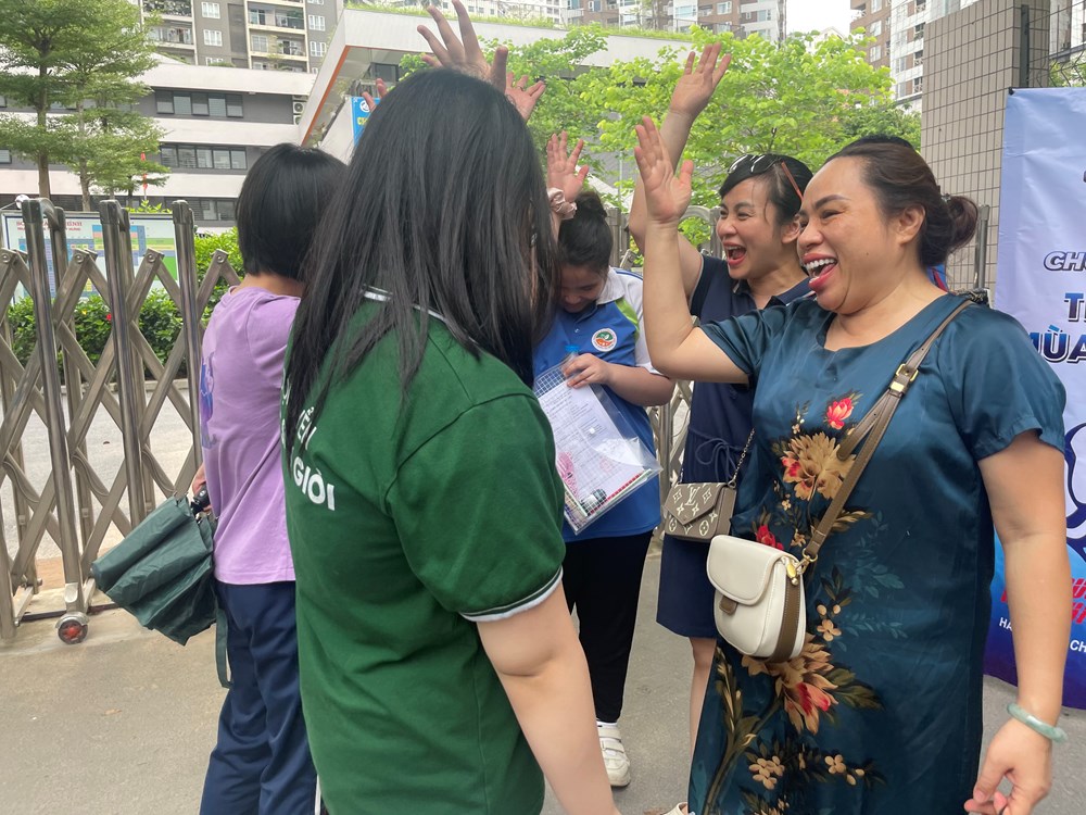 Không chỉ thí sinh phấn khởi, mà nhiều phụ huynh cũng không kìm được cảm xúc khi các con “khoe” làm baì rất tốt. Một nhóm phụ huynh, học sinh Trường Liên cấp TH&THCS Ngôi sao Hà Nội đã cười nói vui vẻ khi các con đều “trúng tủ”. Một phụ huynh cho biết, tối qua con còn xem đi xem lại bài Đồng chí, và sáng nay đã “trúng tủ”.