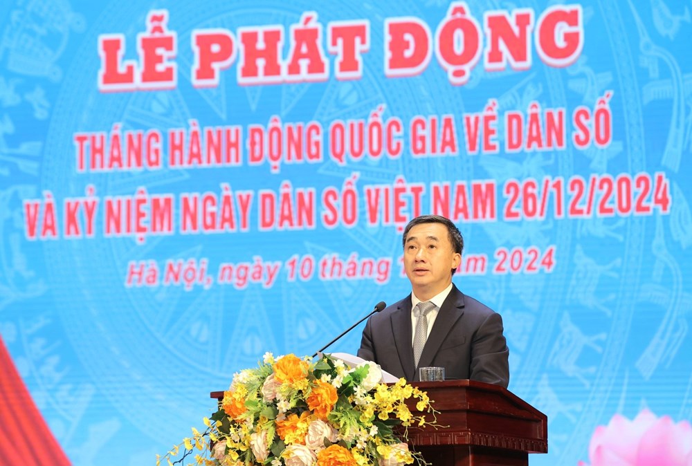 Phát biểu tại buổi lễ, Thứ trưởng Bộ Y tế Trần Văn Thuấn cho rằng, công tác dân số hiện đang đối mặt với nhiều khó khăn, thách thức, tác động đến nhiều lĩnh vực trong tương lai như việc duy trì vững chắc mức sinh thay thế trên phạm vi toàn quốc chưa thật sự bền vững, xuất hiện xu thế mức sinh xuống thấp (năm 2023 ước tính là 1,96 con/phụ nữ, thấp nhất trong lịch sử và dự báo tiếp tục giảm trong những năm tiếp theo).