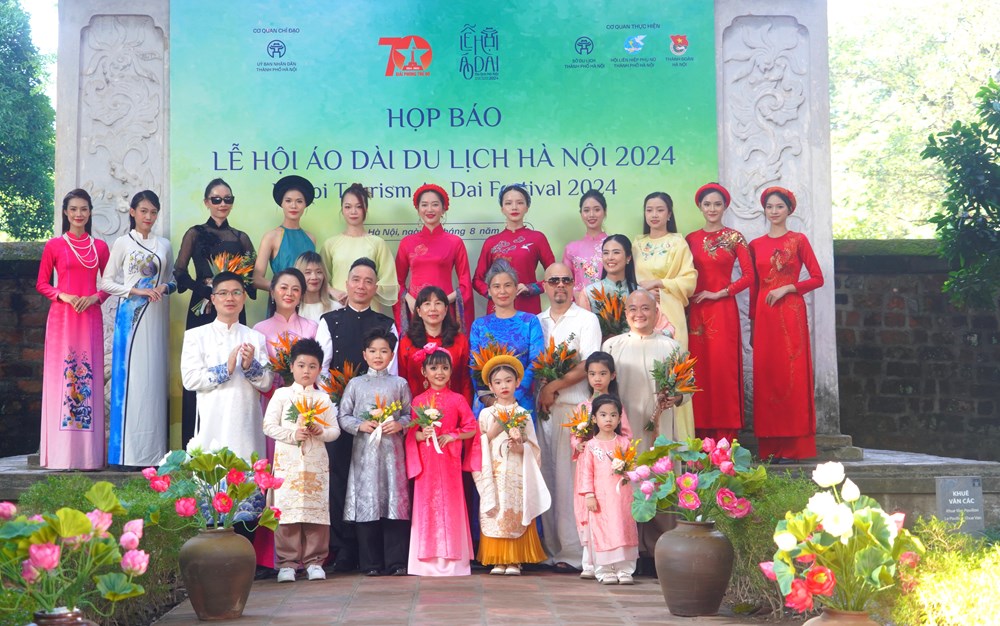 VHO - Ngày 27.8, Sở Du lịch Hà Nội, Hội LHPN Hà Nội, Thành đoàn Hà Nội và các đơn vị liên quan đã phối hợp tổ chức họp báo thông tin về Lễ hội Áo dài Du lịch Hà Nội 2024, chủ đề “Hà Nội - Tinh hoa Áo dài”. Chương trình trọng tâm được diễn ra từ ngày 4-6.10.2024 tại khu di tích Hoàng thành Thăng Long - Hà Nội.