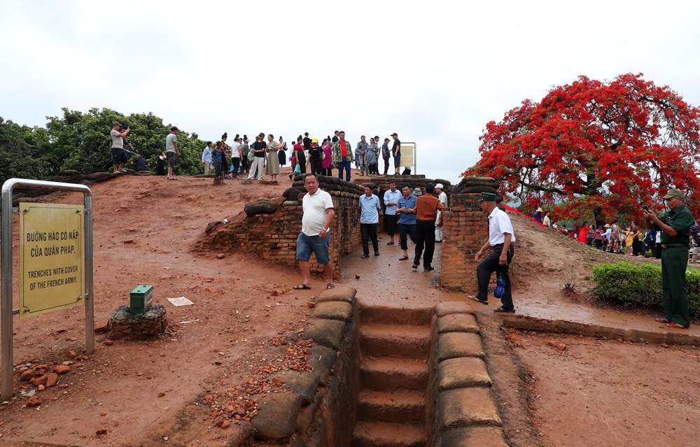 VHO - Từ nhiều ngày qua, hàng chục ngàn du khách từ mọi tỉnh thành đổ về Điện Biên Phủ. Đặc biệt trong những ngày kỷ niệm 70 năm Chiến thắng Điện Biên Phủ, các điểm di tích trên mảnh đất chiến trường xưa như: Nghĩa trang liệt sĩ quốc gia A1, Đồi A1, Khu Di tích Mường Phăng, hầm De Castries … “bùng nổ” lượng du khách.