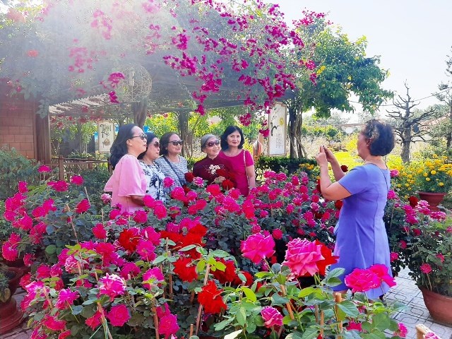 Du khách tham quan vườn hoa làng nghề Trường Sơn Nha Trang dịp đầu Xuân
