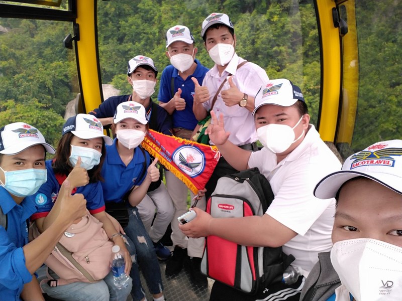 Đoàn khách du lịch từ TP.HCM trên cáp treo Núi Bà Đen, Tây Ninh