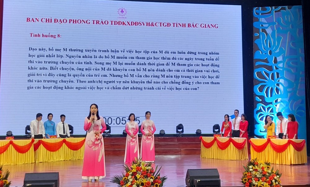 VHO - BCĐ phong trào Toàn dân đoàn kết xây dựng đời sống văn hóa và Công tác gia đình tỉnh Bắc Giang vừa tổ chức Hội thi Tìm hiểu kiến thức pháp luật về gia đình và phòng, chống bạo lực gia đình năm 2024. Sự kiện đã tạo hiệu ứng tích cực nâng cao nhận thức, hành động của các cấp ủy đảng, chính quyền, cả hệthống chính trị vànhân dân trên địa bàn quan tâm xây dựng gia đình no ấm, hạnh phúc, tiến bộ, văn minh.