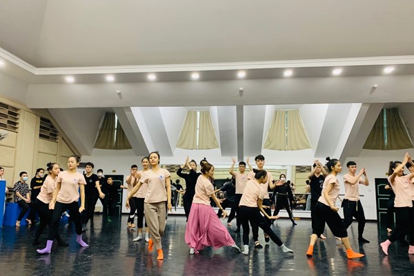 Các nghệ sĩ đang dốc sức từng nhóm tập chương trình