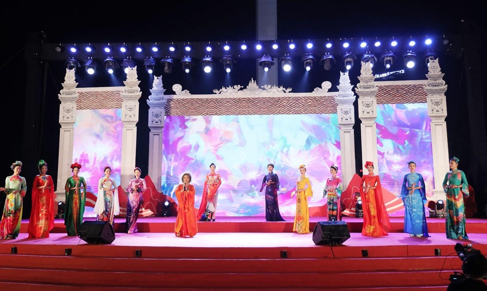 Áo dài Fashion Show khai mạc “Ngày hội văn hóa vì hòa bình” mang tới màn trình diễn những bộ sưu tập áo dài của NTK Đỗ Trịnh Hoài Nam cùng 12 NTK tiêu biểu đến từ 3 miền Bắc - Trung - Nam.