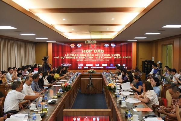 VHO - Chiều nay, tại Hà Nội, Bộ GD&ĐT đã tổ chức họp báo tổn kết giải báo chí “Vì sự nghiệp giáo dục Việt Nam” năm 2022. Giải nhằm tôn vinh các tác giả có tác phẩm xuất sắc về sự nghiệp giáo dục-đào tạo của nước nhà và tôn vinh các tập thể, cá nhân tiêu biểu có nhiều cống hiến cho sự nghiệp trồng người.
