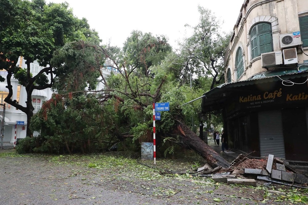 Hình ảnh ghi nhận sáng sớm 8.9: Cây xanh đổ ngổn ngang, la liệt...Phố Nhà ThờPhố Tràng ThiPhố Lý Nam ĐếPhố Lê Hồng PhongPhố Giang Văn MinhPhố Quán SứPhố Lạc Long QuânPhố Phùng HưngPhố Liễu GiaiKhu Liên cơ Bộ VHTTDL tại ngõ 294/2 Kim Mã, là trụ sở của một số cơ quan của Bộ, trong đó có Toà soạn Báo Văn HoáKhu vực Hồ Hoàn Kiếm rất nhiều cây cổ thụ bị gẫy đổ, các nhân viên của Công ty Cây xanh đang khẩn chương cắt dọn để đảm bảo giao thông