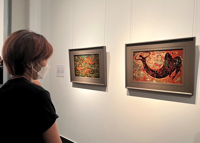 VHO- 30 tác phẩm sơn mài của 10 họa sĩ trong triển lãm “Dạo bước qua vùng đất của sơn mài” mang tới cho người xem một dòng chảy sáng tạo cuốn hút, với các phong cách sáng tác đa dạng, rất “chất” của các hoạ sĩ đương đại nổi tiếng với tranh sơn mài - đặc sản mỹ thuật Việt Nam.