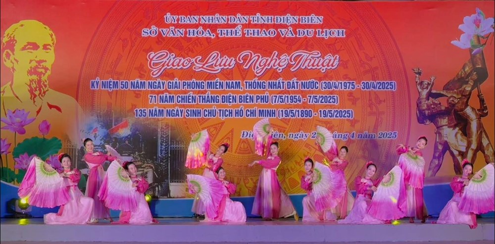 VHO - Tối 29.4, tại sân hành lễ Tượng đài Chiến thắng Điện Biên Phủ, Sở VHTTDL Điện Biên tổ chức chương trình Giao lưu nghệ thuật “Giai điệu non sông” kỷ niệm 50 năm Ngày giải phóng miền Nam, thống nhất đất nước, 71 năm Chiến thắng Điện Biên Phủ và 135 năm Ngày sinh Chủ tịch Hồ Chí Minh.