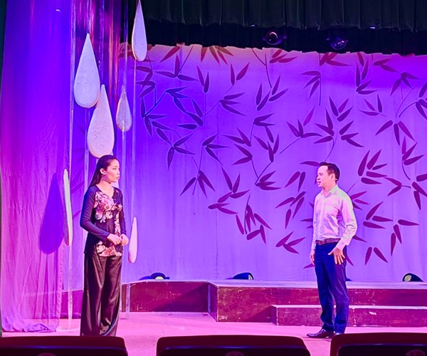 Hai nghệ sĩ Như Quỳnh và Văn Đáng (Nhà hát Cải lương Việt Nam) đang tập tiết mục tham gia chương trình