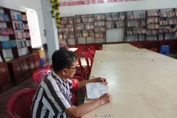 Một phạm nhân đang chăm chú đọc một cuốn sách về tôn giáo giáo