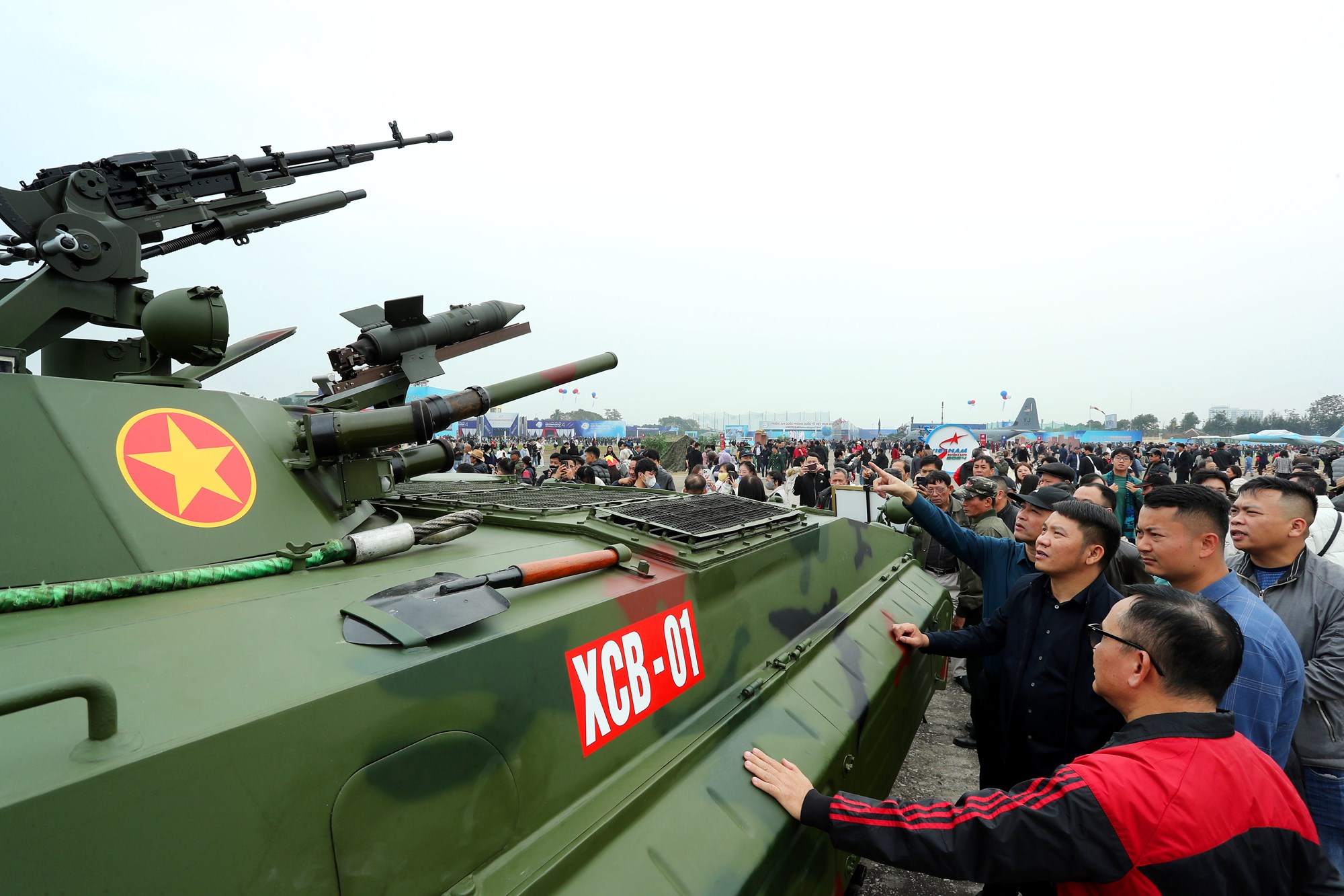 Triển lãm Quốc phòng quốc tế Việt Nam 2024 nhân Kỷ niệm 80 năm Ngày thành lập QĐND Việt Nam với sự tham gia của 38 quốc gia thể hiện vị thế, uy tín của Việt Nam và Quân đội nhân dân Việt Nam trên trường quốc tếBiên đội tiêm kích SU-30MK2 hiện đại nhất của không quân biểu diễn trong Triển lãm Quốc phòng quốc tế Việt Nam 2024, Kỷ niệm 80 năm Ngày thành lập QĐND Việt Nam, cho thấy sức mạnh làm chủ bầu trời của không quân Việt NamTổ hợp tên lửa phòng không S-125-VT. Đây là phiên bản hiện đại hóa của tổ hợp S-125 Pechora (Liên Xô) do Viettel nghiên cứu, cải tiến. Cho thấy sự phát triển vượt bậc của công nghiệp quốc phòng Việt Nam. Việt Nam đã làm chủ khoa học công nghệ, chủ động sản xuất được các thiết bị hiện đại để bảo vệ Tổ quốcBất ngờ khi được xem Tổ hợp tên lửa phòng không S-125-VT. Đây là phiên bản hiện đại hóa của tổ hợp S-125 Pechora (Liên Xô) do Viettel nghiên cứu, cải tiến. Đó là cảm xúc của đa số người dân đến xem triển lãmĐông đảo người dân thích thú khi lần đầu được chiêm ngưỡng chiếc máy bay huấn luyện mang ký hiệu TP-150 được Công ty Flying Legend Vietnam lần đầu ra mắt. Đây cũng là chiếc máy bay huấn luyện và tuần tra đầu tiên được gắn nhãn... "made in Việt Nam", qua đó thể hiện khát vọng làm chủ công nghệ, làm chủ bầu trời của người ViệtNụ cười rạng ngời của phi công huyền thoại Phạm Tuân trên chiếc máy bay "made in Việt Nam" thể hiện khát vọng làm chủ công nghệ, làm chủ bầu trời của người ViệtNhững chiếc UAV trinh sát, UAV cảm tử và UAV đa năng. Đây là những chiếc máy bay không người lái do người Việt Nam tự làm chủ công nghệ, tự nghiên cứu, phát triển và chế tạoXe chiến đấu bộ binh XCB-01 là phương tiện bọc thép bánh xích đầu tiên được Việt Nam nghiên cứu và chế tạo trong nước. Xe có nhiều tính năng ưu việt và phù hợp với điều kiện địa hình, khí hậu Việt Nam, là niềm tự hào của nền công nghiệp quốc phòng Việt NamRất đông người dân và du khách đến với Triển lãm Quốc phòng Quốc tế Việt Nam 2024Các chiến sĩ đặc công biểu diễn sức mạnh tại Triển lãm Quốc phòng quốc tế Việt Nam 2024