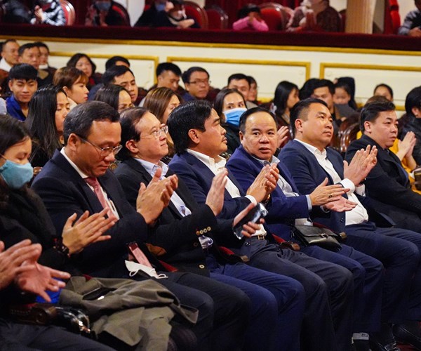 Thứ trưởng Bộ Tạ Quang Đông và các đại biểu tham dự buổi công diễn vở kịch Như thế là tội ác
