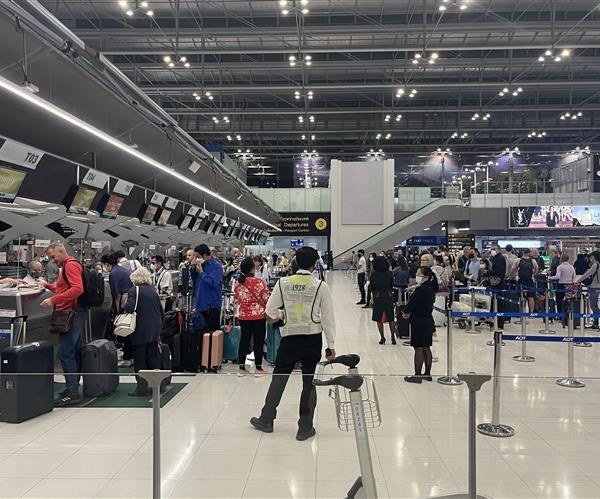Hành khách làm thủ tục tại sân bay sân bay quốc tế Suvarnabhumi (Thái Lan). (Ảnh: Huy Tiến/TTXVN)