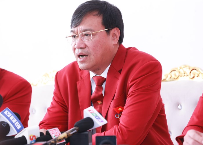 Trưởng Đoàn Đặng Hà Việt thông tin đến báo chí về thành tích thi đấu của Đoàn Thể thao Việt Nam