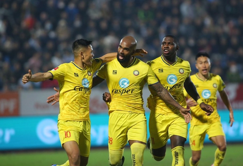 Phải đến nửa cuối hiệp 1, thế trận mới trở nên kịch tính hơn. Phút 28, Luiz Antonio sút phạt trực tiếp từ sát vòng cấm, bóng chạm hàng rào và tới chân Doãn Ngọc Tân. Tiền vệ mang áo số 34 này nhanh chân sút bồi, mở tỷ số cho Đông Á Thanh Hóa.