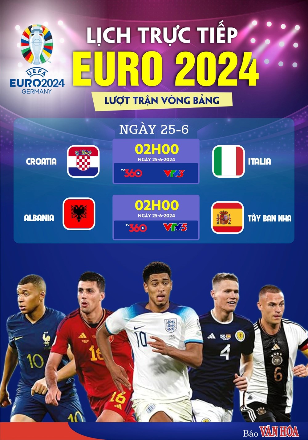 Lịch truyền hình trực tiếp EURO 2024 hôm nay 24.6: