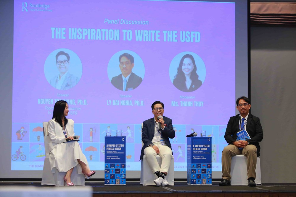 Tiến sĩ Nguyễn Trà Giang và cộng sự - Tiến sĩ Oliver Napila Gomez hiện đang công tác tại Trường Đại học Quản lý và Công nghệ TP.HCM (UMT) đã có buổi giới thiệu cuốn sách với tựa đề Mô hình Thể chất toàn diện và bao hàm - A Unified System Fitness Design" (USFD) được xuất bản bởi Nhà xuất bản Routledge (Anh).