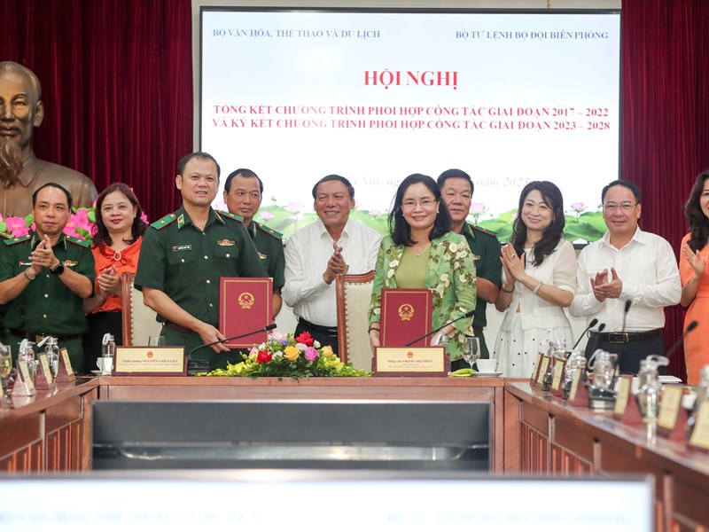 VHO - Chiều 9.8 tại Hà Nội, Uỷ viên BCH Trung ương Đảng, Bộ trưởng Bộ VHTTDL Nguyễn Văn Hùng và Thiếu tướng Nguyễn Anh Tuấn, Chính uỷ Bộ đội Biên phòng (BĐBP) đã chủ trì Hội nghị tổng kết Chương trình phối hợp công tác giai đoạn 2017 - 2022 và ký kết Chương trình phối hợp công tác giai đoạn 2023 - 2028 giữa Bộ VHTTDL và Bộ Tư lệnh BĐBP.