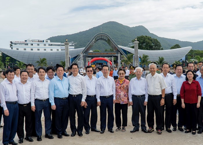 Lãnh đạo, nguyên lãnh đạo Đảng, Nhà nước, các Bộ, ngành, lãnh đạo tỉnh Bà Rịa - Vũng Tàu chụp hình lưu niệm tại Cảng Tàu khách Côn Đảo