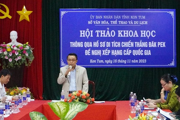 VHO - Ngày 16.11, Sở VHTTDL tỉnh Kon Tum tổ chức Hội thảo khoa học thông qua hồ sơ Di tích chiến thắng Đăk Pek đề nghị xếp hạng cấp quốc gia. Hội thảo có sự tham gia của các Sở, ban, ngành, cơ quan, đơn vị và các nhân chứng lịch sử đã tham gia chiến đấu tại Đăk Pek.