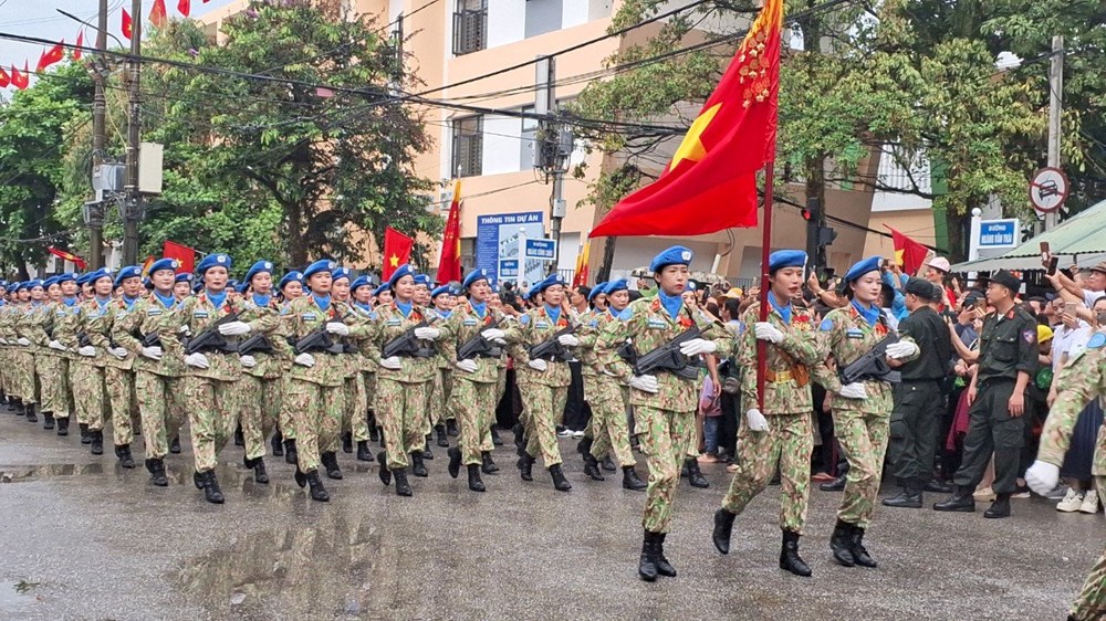 Lễ diễu binh, diễu hành diễn ra hoành tráng, giàu cảm xúc, với sự tham gia của hơn 12.000 người. Trên các khán đài của sân vận động Điện Biên Phủ ngợp cờ hoa và những tràng vỗ tay giòn giã.