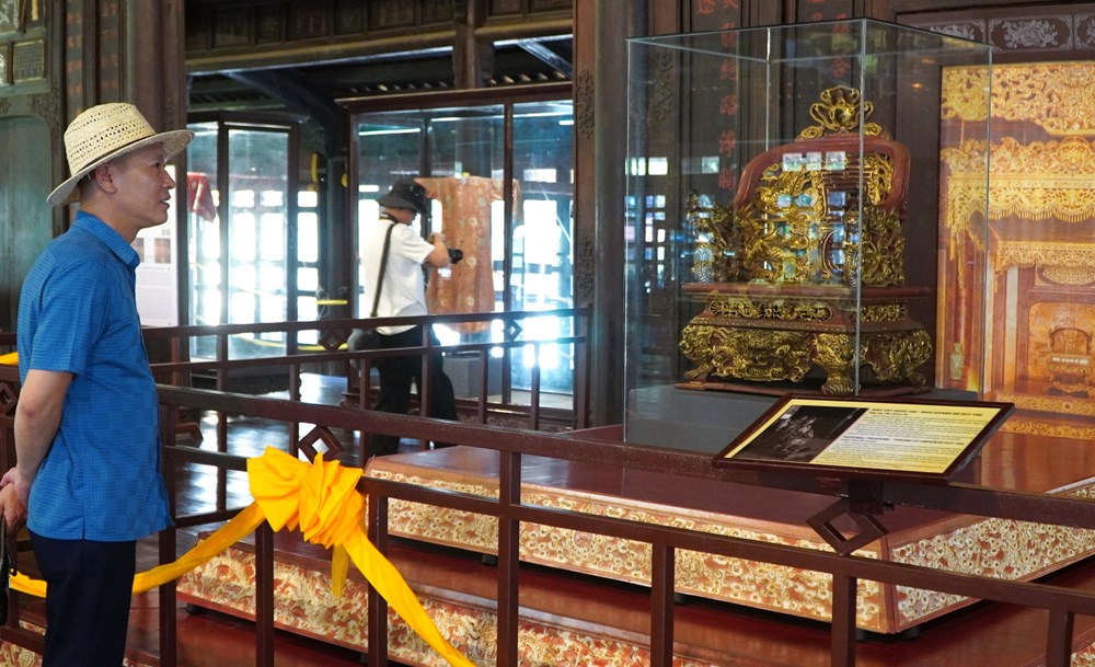 Cùng với đó, 2 chiếc ngai sơn son thếp vàng dưới thời Khải Định (1916 - 1925) cũng đã được đặt trong lồng kính để trưng bày phục vụ du khách tham quan, tìm hiểu.