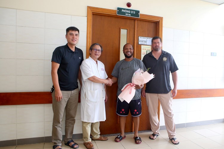 Các bác sĩ Bệnh viện Trung ương Huế thăm khám cho bệnh nhân người Mỹ sau phẫu thuật thành công